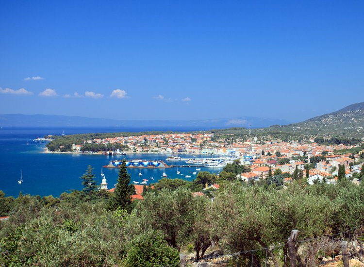 The island is car-free, so you can explore it on foot, wandering through pine forests and olive groves at your own pace.