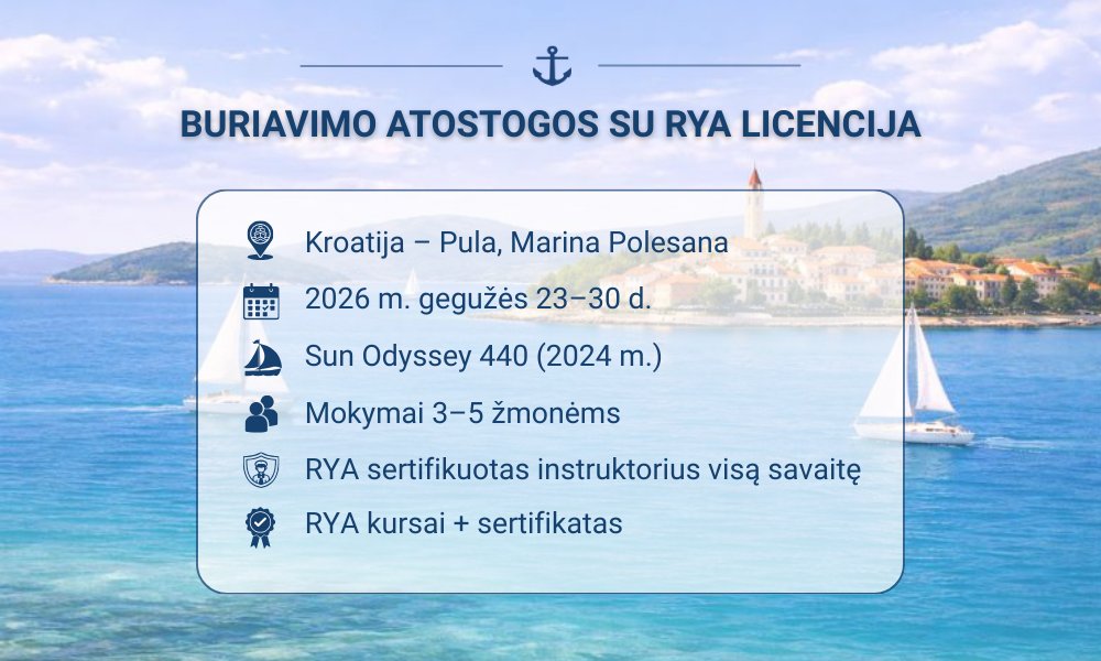 • Tarptautinę RYA buriavimo licenciją